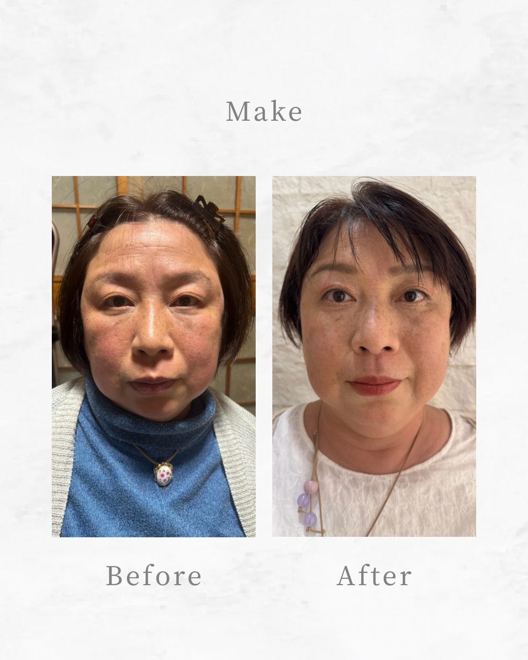 同行ショッピングを重ねてヘア、メイクまで自然と意識がむき迷いがなくなったからこそ、服えらびメイクに時間をかけなくても素敵に着こなし×メイクができるようになられました!